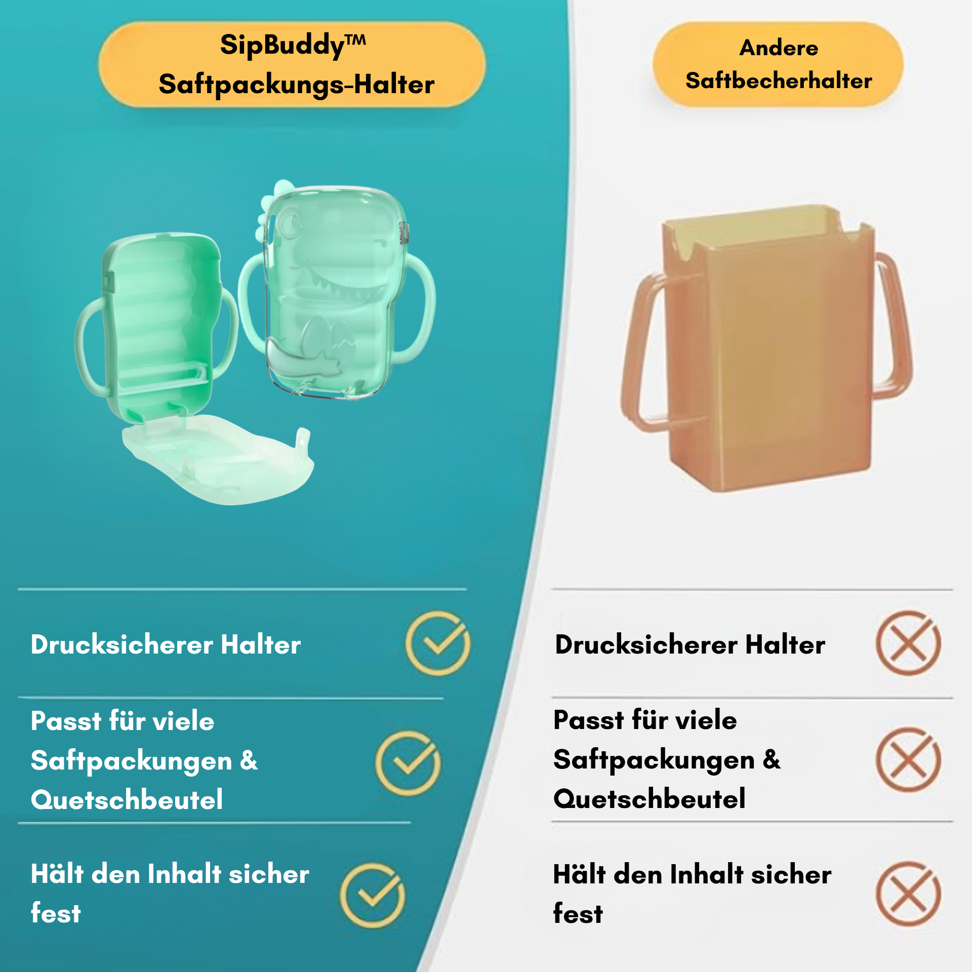 Mit rutschfesten Griffen und einem drucksicheren Design verhindert er, dass Kinder ihre Saftpäckchen oder Quetschies zusammendrücken - kein Tropfen, kein Stress.