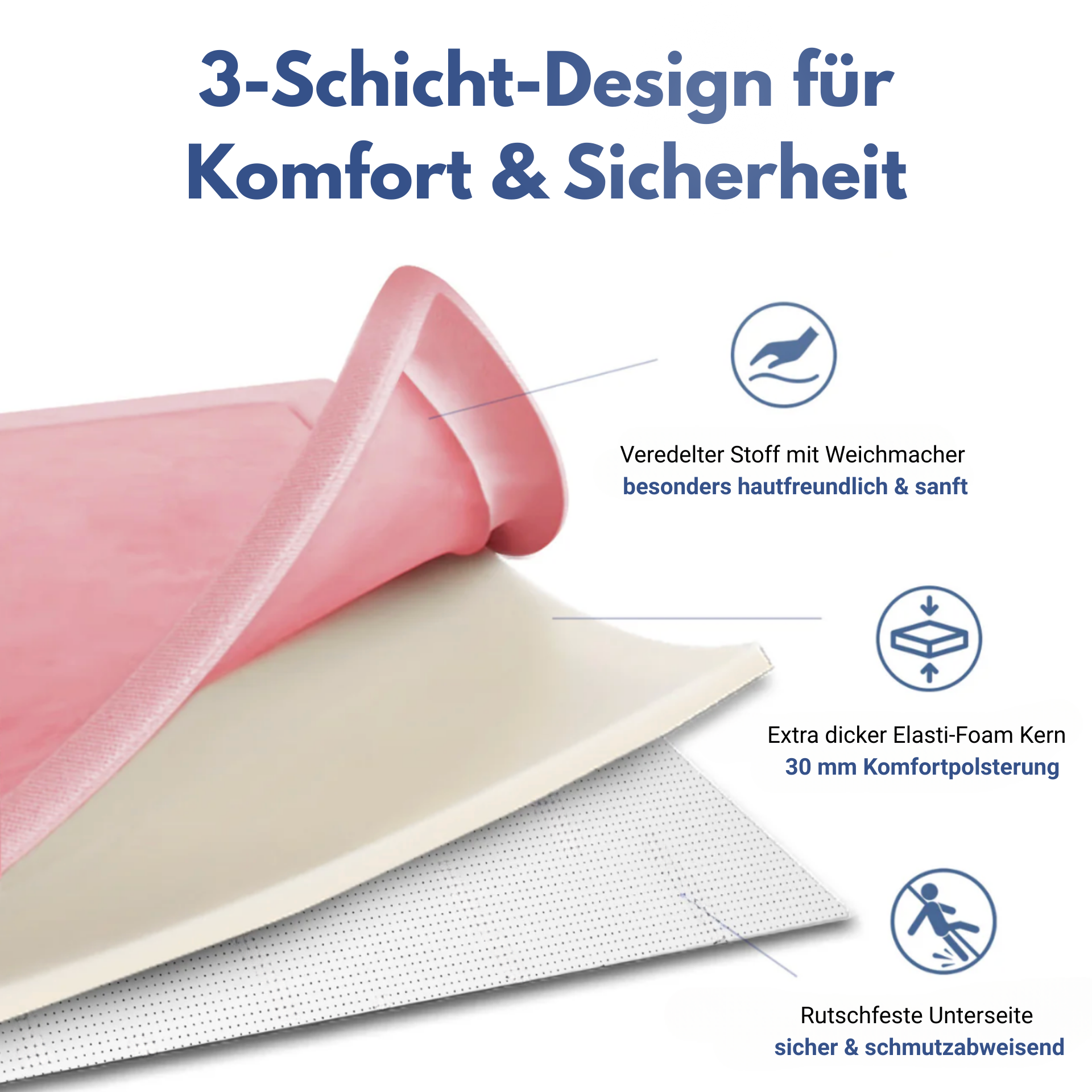 Der verwendete Memory-Schaum ist frei von Schadstoffen, geruchlos und hautfreundlich – für eine nachweislich sichere Anwendung, selbst bei empfindlicher Babyhaut.